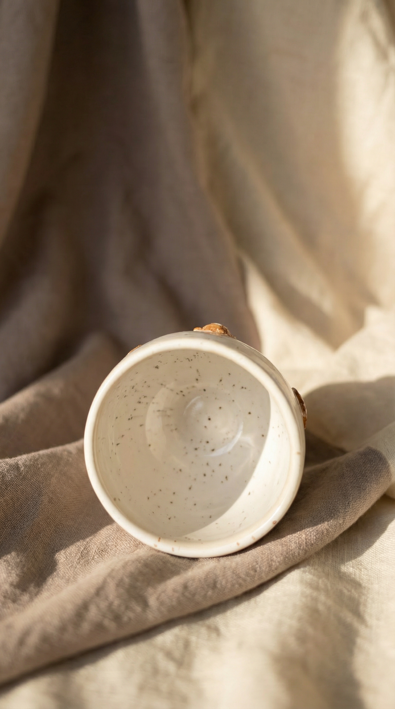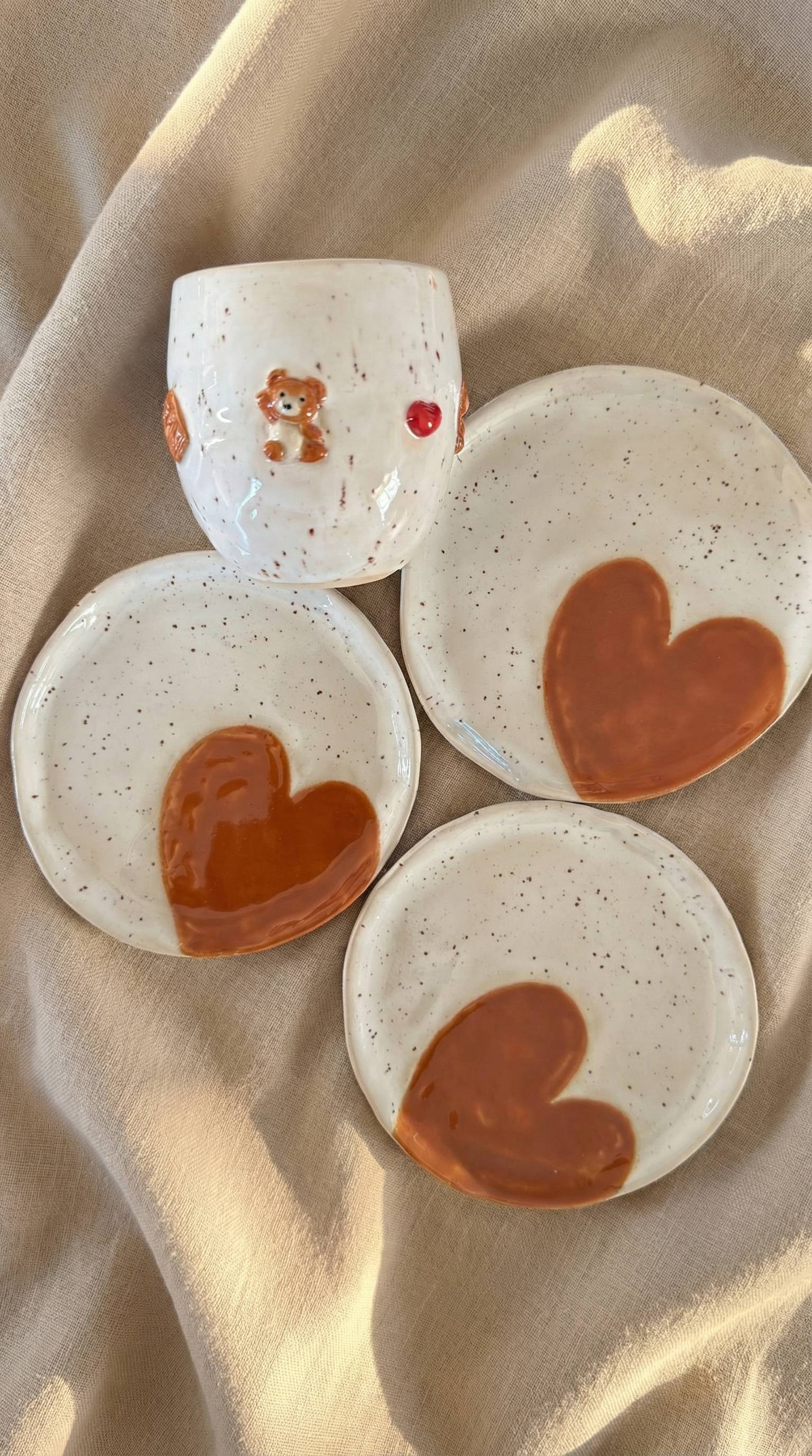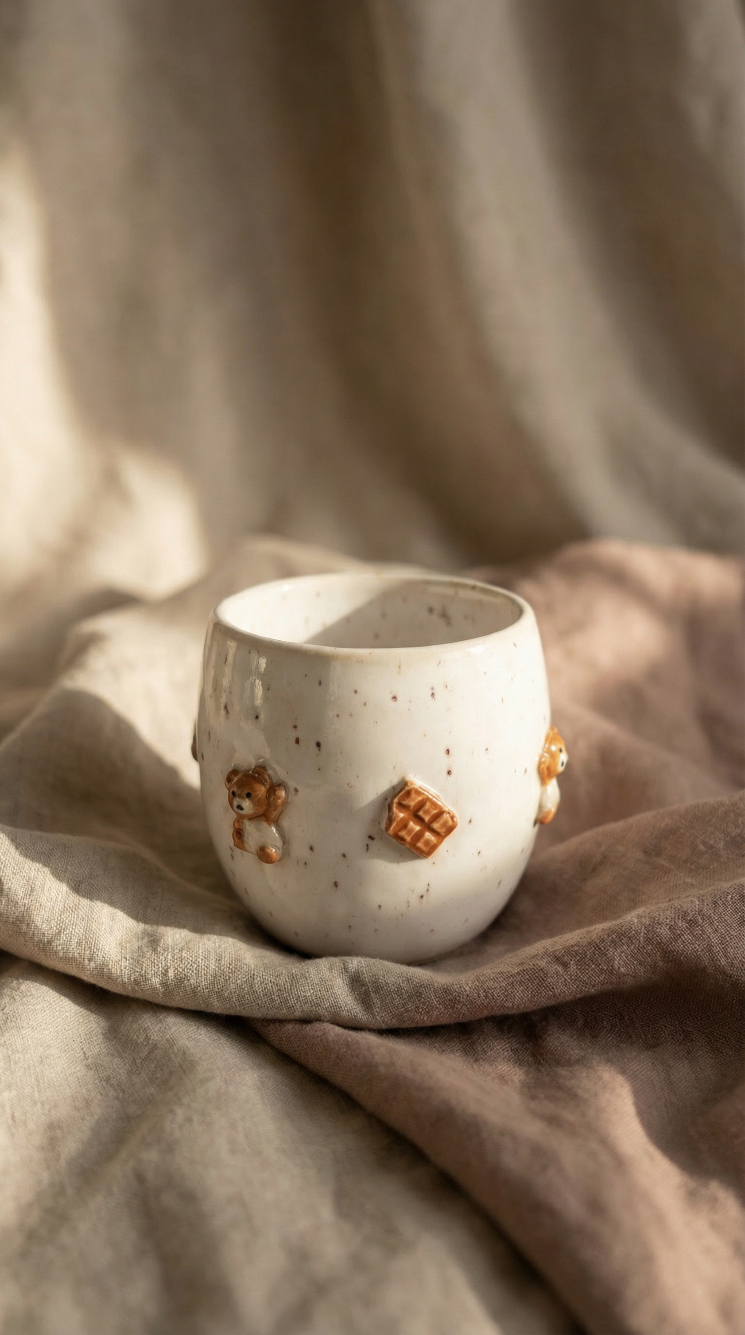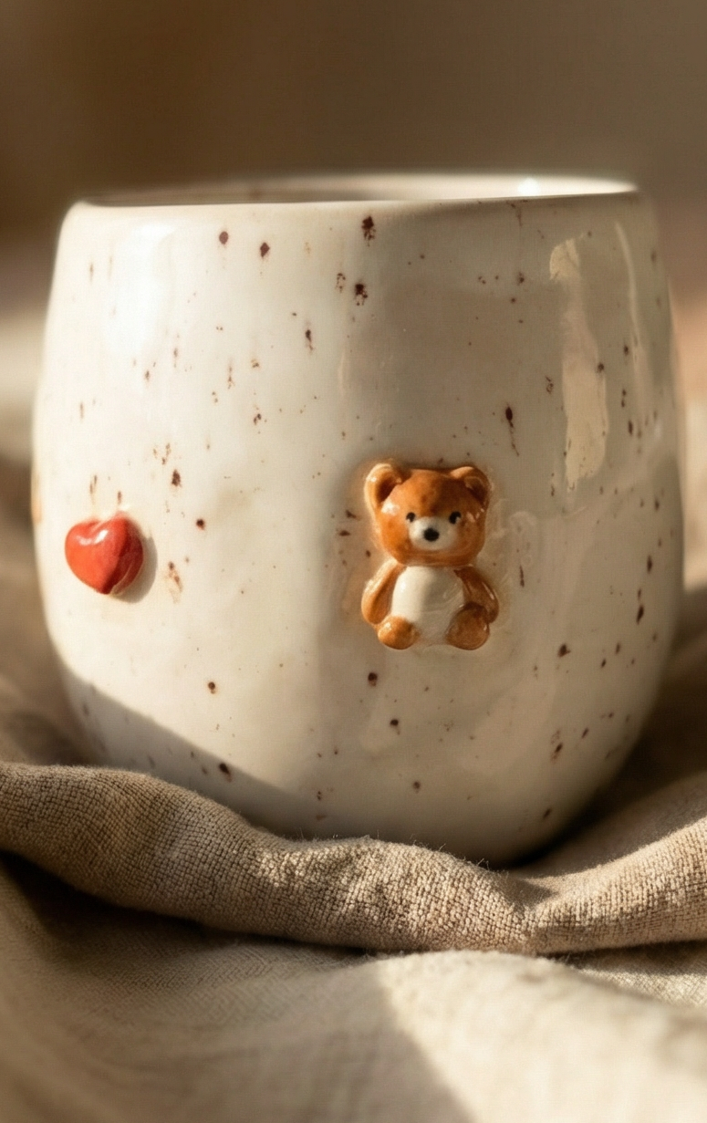 This handmade ceramic Love Bear Luna Mug boasts a creamy speckled glaze with adorable sculpted bears, chocolate bits, and red hearts for sweet, playful charm. Perfectly shaped for a good hand grasp, it's uniquely handcrafted and ideal as a gift for yourself or loved ones, especially for cozy hot cocoa or tea moments. Pairs beautifully with the Love Speckled Plates for a matching love-themed set.