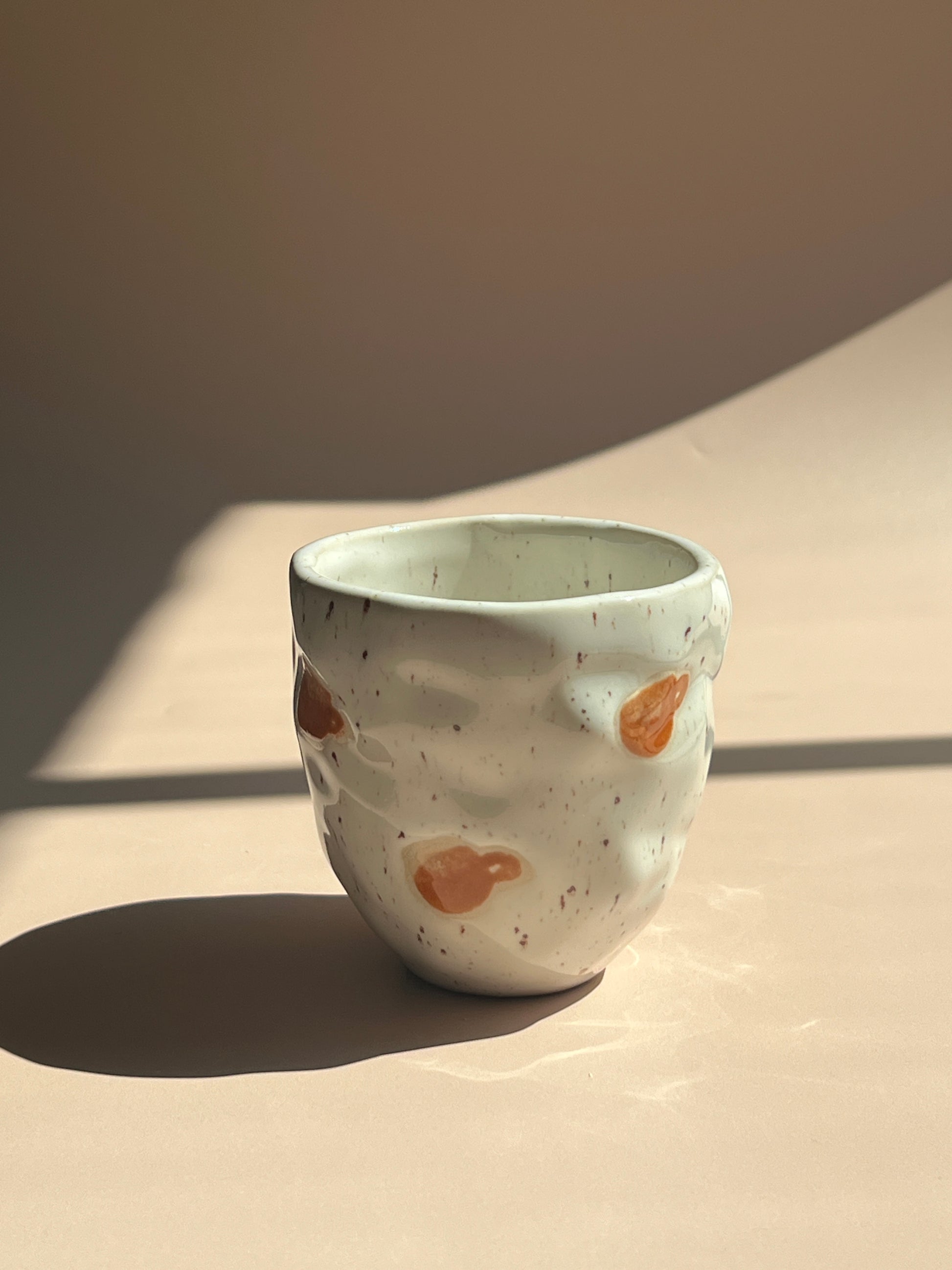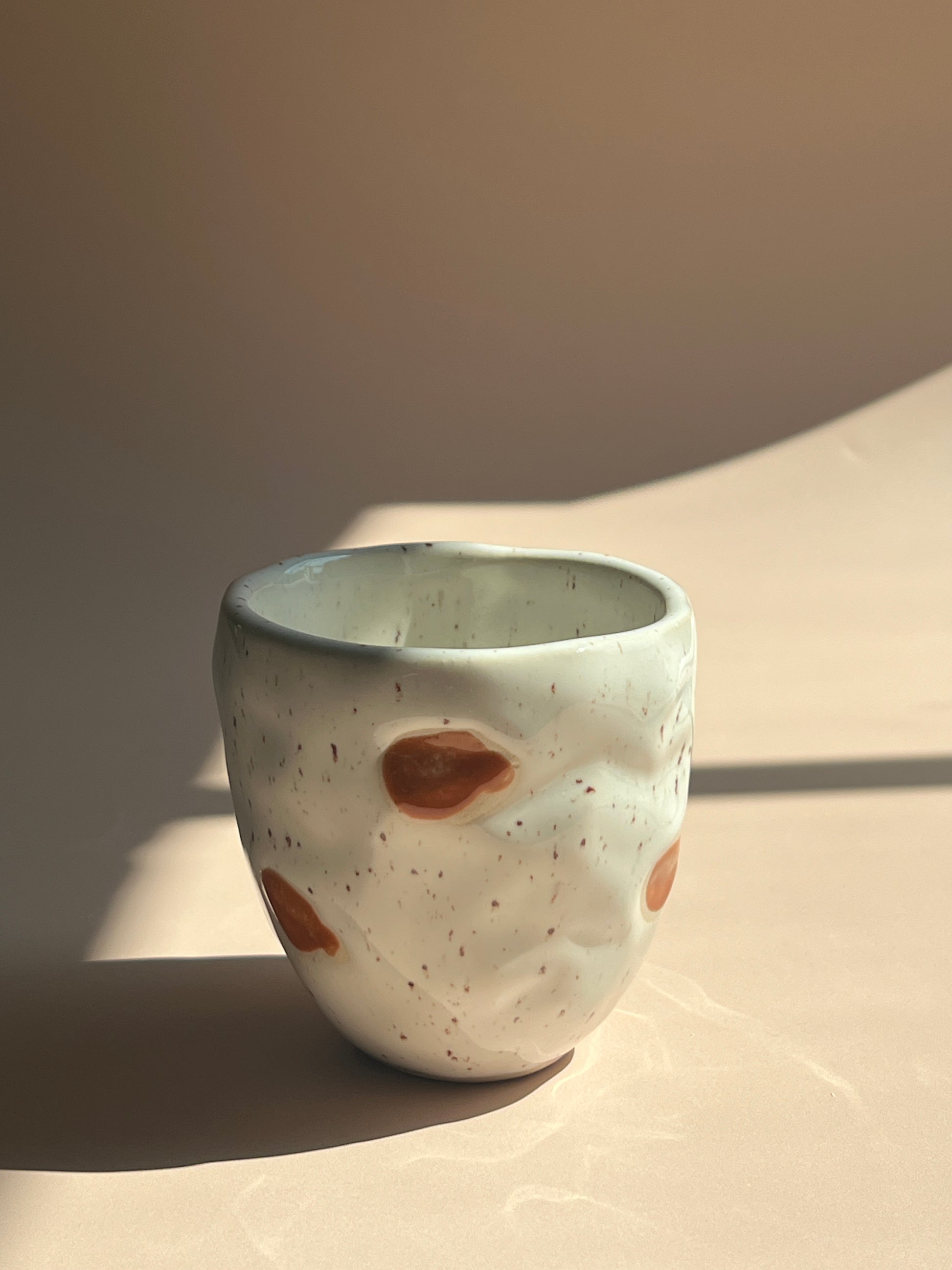 An organically shaped, speckled mug with warm mocha-brown accents—perfect for bringing earthy charm to your daily coffee ritual.