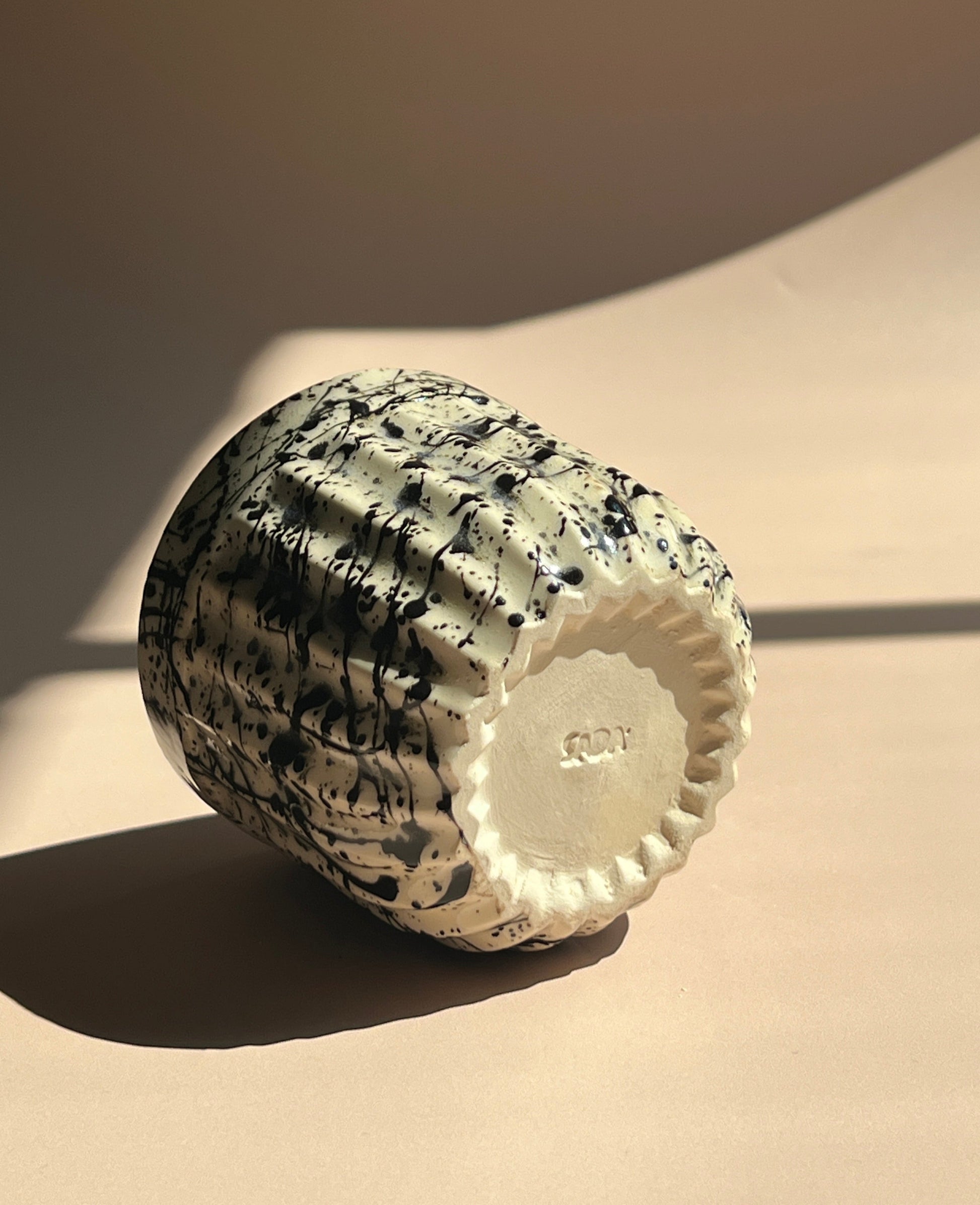 Elevate your daily ritual with the Noir Drip Crystal Mug, a striking handmade ceramic piece from our Noir Drip collection. Featuring a unique faceted form and bold black splatter glaze over a creamy base, this mug blends modern artistry with everyday function. Perfect for coffee, tea, or your favorite drink, it brings a touch of edgy elegance to any moment.
