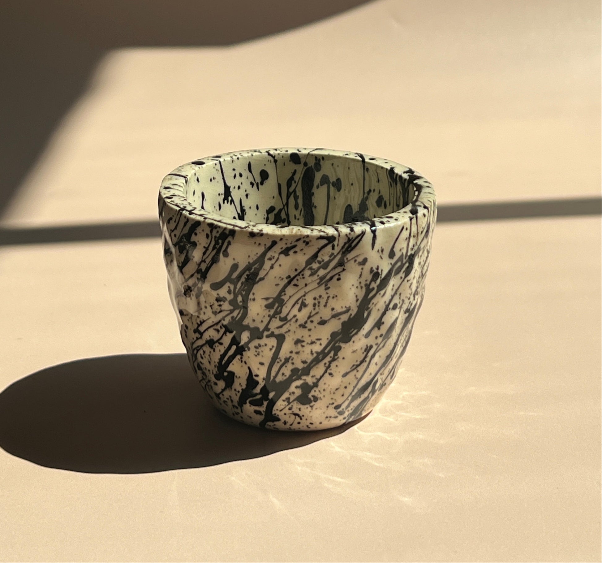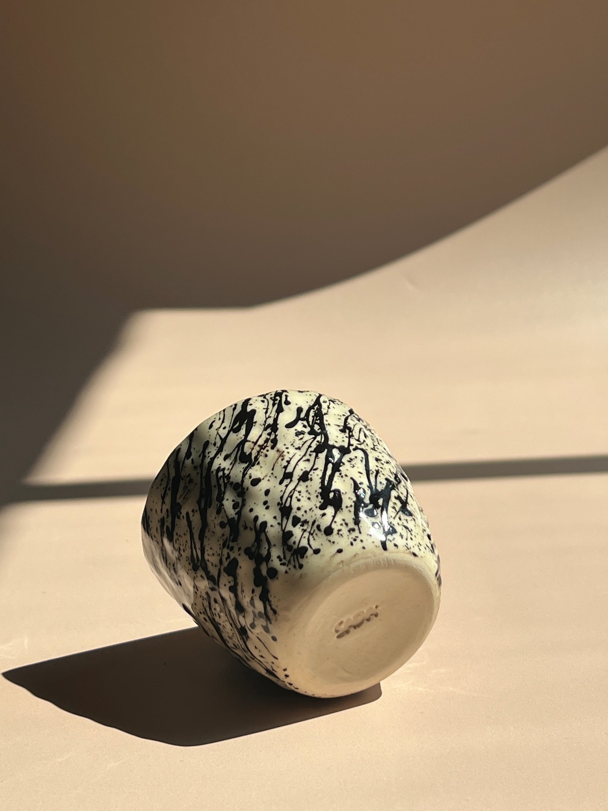 Handcrafted with a distinctive rippled texture, the Noir Drip Ripple Mug stands out with its bold black splatter glaze over a creamy, speckled base. The organic dimples fit comfortably in your hand, while each expressive drip pattern makes every mug unique. Part of the Noir Drip collection, this piece brings modern artistry and tactile appeal to your daily coffee or tea ritual.