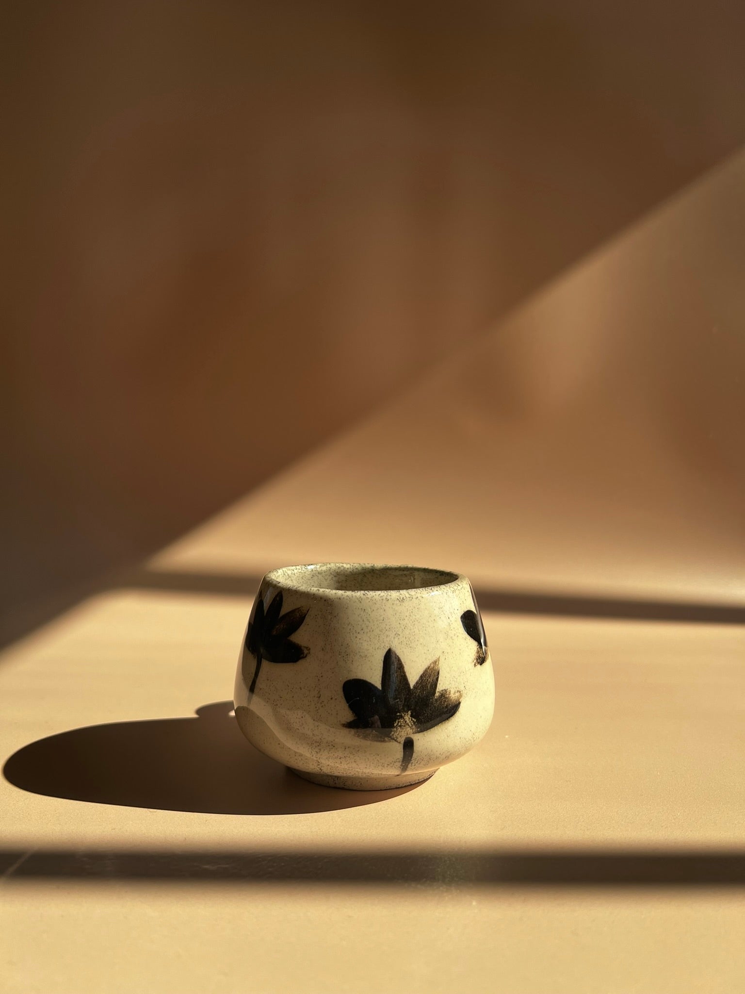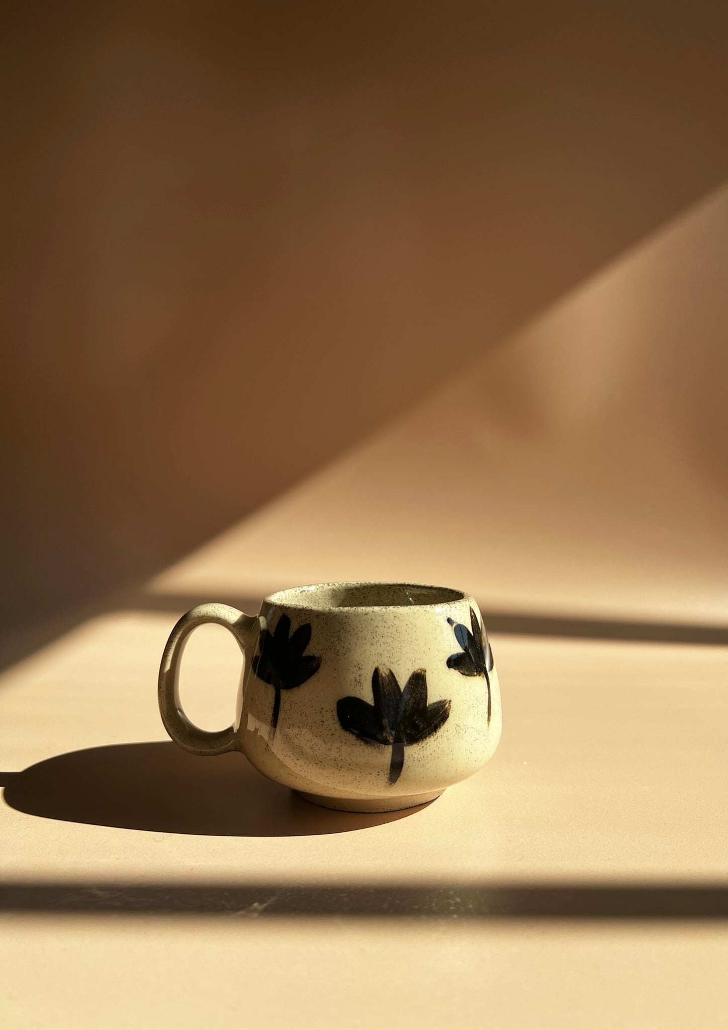 The Noir Petal Pebble Mug features a softly rounded silhouette with a comfortable handle, crafted from speckled clay and finished in a creamy glaze. Bold, hand-painted black petal motifs encircle the mug, creating a striking contrast and a modern, organic feel. Each mug is individually made, ensuring that every piece is unique—perfect for adding a touch of graphic elegance and handcrafted charm to your daily rituals.
