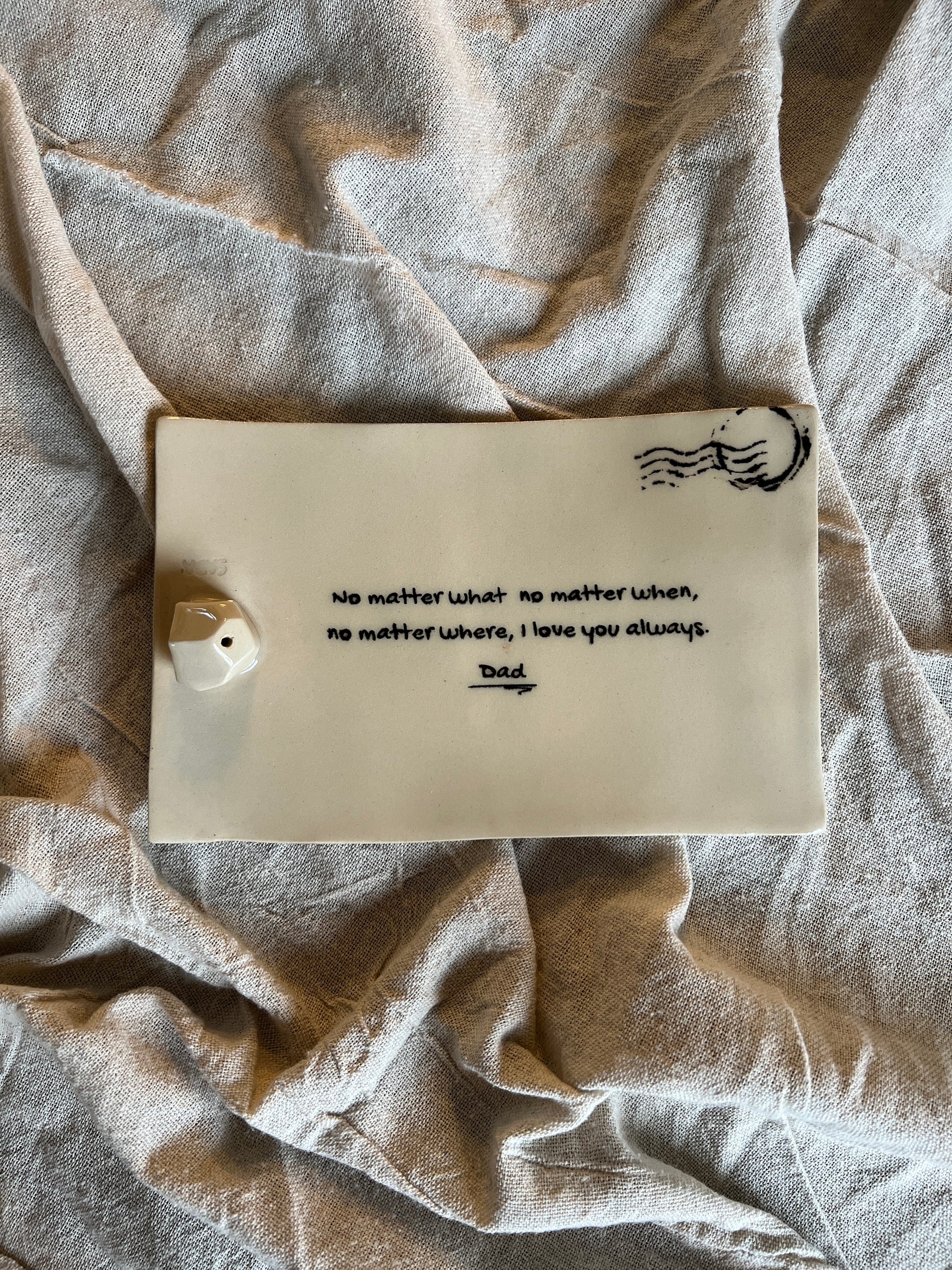 • Your handwriting should be in bold black ink and easy to read, so your message stays clear and heartfelt on the finished ceramic.