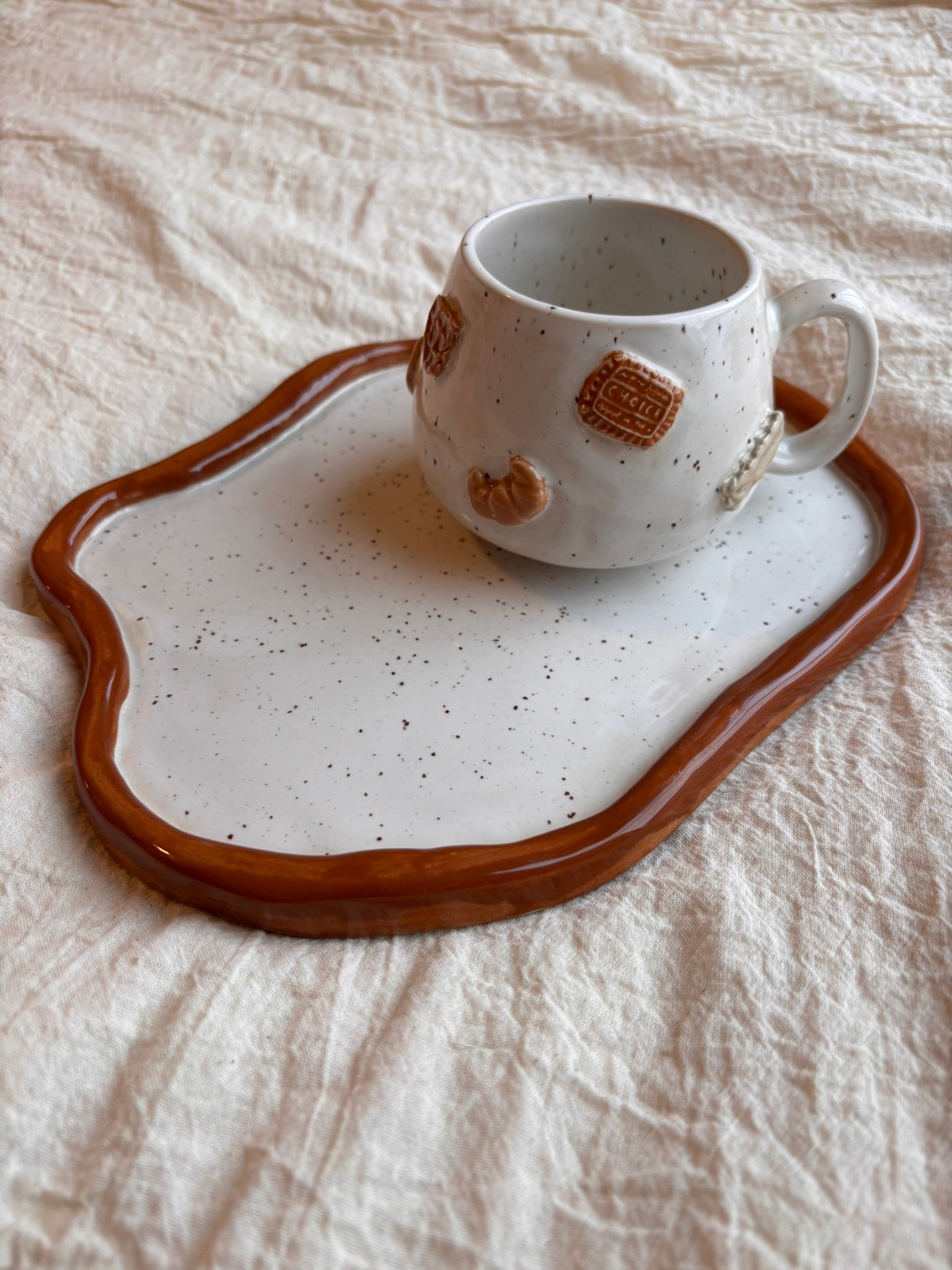 Treat yourself to this handmade ceramic plate with amorphous shape and finished with charming, hand-painted details. Perfect for serving pastries, desserts, or small bites—and sure to brighten your daily moments.