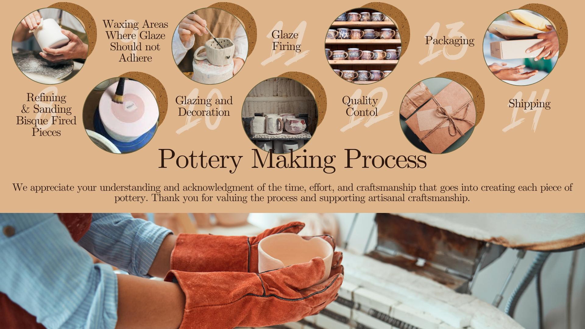 Handcrafted with Love Every piece of pottery is uniquely handmade, reflecting the artisan's skill and creativity. Subtle variations in shape, glaze, and texture are a hallmark of genuine craftsmanship, making each item truly special.